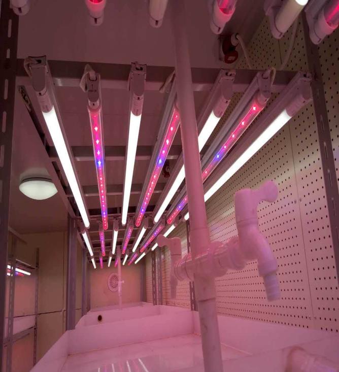 設計為水冷結構,通過(guò)對水溫的調控,以及對換熱面積的計算、設計,確保LED工作在最佳溫度狀態(tài)下,因LED具有較好的單色性,可以針對植物需求而進(jìn)行調配補光光譜?,F設計為白光混合紅藍光,根據植物生長(cháng)不同階段對光譜的需求是不同的。一般生長(cháng)主要需要紅藍光,但是針對開(kāi)花.結實(shí)等過(guò)程,又有可能需要黃綠光和紅外光。因此,要根據不同作物搭配紅、藍、白、紅外,實(shí)現最低能耗的植物生長(cháng)。